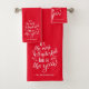 Red Modern Christmas Typography Personalised Bath Towel Set