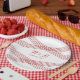 Simple and elegant Modern Deco Wedding Paper Plates with a striped criss-cross hatched art deco design in red. These classic plates can be easily customised with your wedding details. For more customisation options, click on the Customise It button.