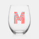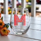 Red Modern Monogram Initial Letter Stemless Wine Glass