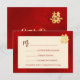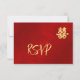 A gold double happiness symbol on a shimmering red background. RSVP Chinese Wedding Card.