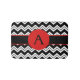 Make a fashion statement with your home decor with this mat monogrammed with your initial. Use in the bath, kitchen, bedroom or any room in the house. The Chevron ziz zag (zizzag) graphic design is one of the hottest art and design trends, and is extremely popular from fashion to home decor. This sophisticated black and white chevron rug is given an eye popping dash of colour with a red circle for personalising with your monogram initial and sits on a black strip with red edges. Easy to customise!