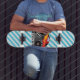 Red Monster Truck; Chequered Flag; Blue Stripes Skateboard