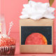 Sticker of watercolors on paper of a red moon galaxy painting.
