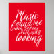A cool hand lettering calligraphy poster with inspirational music quote. Music found me when no one else was looking. A great decoration for your room. Perfect for music lovers and those passionate about songs and lyrics. Background colour can be customised.
