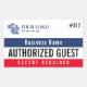 Visitor pass sticker with a simple design in black, white, navy blue, and red. Authorised guest is written across the guest sticker, but you can change the wording to suit your needs. Personalise further with your business logo and the name of the company.