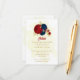 Romantic dark red & navy blue flowers with gold leaves botanical wedding details enclosure cards.
