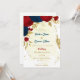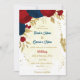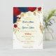 Romantic dark red & navy blue flowers with gold leaves botanical wedding invitation