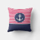 Red Navy Blue Nautical Anchor Design Custom Name Cushion