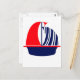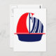 Red Navy White Sail Boat Postcard