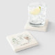 This Christmas or holiday stone coaster features a whimsical drawing of a deer walking through a snowy pine forest. The deer is wearing a red nose and some of the trees are decorated. The Holiday message text is fully customisable so you can substitute your own greeting or add your name. Original artwork. Copyright Leah Wiedemer.