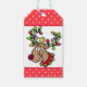 A Cute Cartoon Red Nosed Reindeer With Decorated Antlers Gift Tags For The Holidays