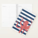This trendy modern beach style planner contains a red octopus against a white and navy blue striped background.