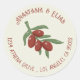 Elegant light yellow envelope seals with the pastel illustration of red olives on a branch .Personalise then with the names and address .