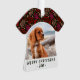 Red One Line Art Dog Pet Photo Christmas Keepsake Ornament. Red and pink one line shapes. The text reads Merry Christmas. Change the photo with your pet - dog or cat or another animal photo. Sweet holiday keepsake ornament or unique gift.