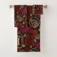 Red One Line Artistic Drawing Pattern Monogram Bath Towel Set