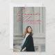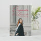 Modern graduation announcement featuring the graduate's vertical photo with "Onwards and Upwards" in a red handwritten script. Personalize the front of the photo graduation announcement by adding the graduate's name, school, and graduation year. The announcement reverses to display an additional photo with the graduate's future plans, grad party details, etc. shown below.