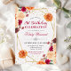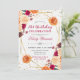 This elegant birthday invitation blends a soft rustic white‑lace background with vibrant fall florals in rich shades of red, orange, peach, and cream. A refined gold geometric frame highlights your event details, while scattered gold glitter confetti adds a festive, celebratory sparkle. The combination of warm autumn blooms, delicate lace texture, and shimmering metallic accents creates a beautifully inviting design perfect for fall birthdays, barn venues, outdoor celebrations, or anyone who loves cosy seasonal stationery with a touch of glamour. Personalise the name, date, and venue to create a stunning keepsake.