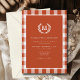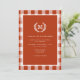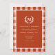 Bring vibrant charm to your big day with this classic gingham wedding invitation, part of the Elegant Rustic Gingham Collection. Featuring a bold gingham pattern background in your choice of six cheerful colours, a monogram crest, and elegant serif typography, this design blends rustic charm with timeless style.