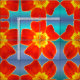 Red Orange Marigold Flower Blue Background Pattern Fabric