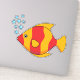A cartoon red orange tropical fish. He is swimming in the blue ocean while making bubbles. This cute kawaii illustration is good for sea and aquarium lovers and to bring back memories of happy summer tropical holidays.