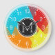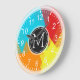 Red Orange Yellow Blue Mosaic Modern Monogram Large Clock