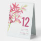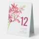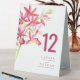 Red orchid flower wedding table number