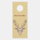 This paper door hanger is tan with a male deer head outlined in red with big antlers on the front and back. Customize your text on the front and back with the template.
