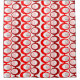 This shower curtain has a mid-century modern design of string of ovals in red and brick red, with white ovals and circles made of lines inside them.