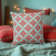 Red over Teal Damask Pattern Cushion