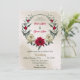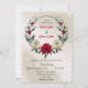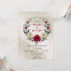 Unique wedding invitation featuring romantic red and pale yellow flowers and green leaves.