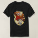 I give wanted to give this a 4 instead of a 5 because these Basic DARK T0shirts run unexpectedly SLIM or Narrow. Which is great if you do not have a potbelly, but I have a paunch. It isn't the shirt's fault that I've got a beer belly. The design and shirt itself is a quality cotton shirt. The color is more of a deep purple, but still a very pretty color. The Basic DARK T-shirts run a bit SLIMMER than the Basic Ts. The neck is a fraction narrower (or seems to be narrower) also. I'm a paunchy middle-aged woman and my neck is 12 inches (31cm) thick and the neckline fell about the same as in the photo of the man, and I had the desire to tug it a bit. So if you're a thick necked man or like loose shirts, be aware these are slimmer shirts. Once I get rid of my lockdown paunch it'll look great. The shirt washed well in cold water with no apparent bleeding. We don't have a dryer, so it hung dry. Did not shrink. Love the colors and the design. The design looks smaller on my shirt than it does on the model on-line. But still, it looks good on the shirt. The printing looks as it does on the model, just the size seems fractionally smaller. Washed garment in cold water, hung dry and design appeared unaffected.