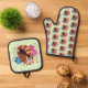 Red Panda Lotus Flowers Henna Oven Mitt & Pot Holder Set