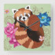 Red Panda Lotus Flowers Henna Square Wall Clock
