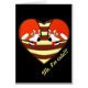 Two red panda facing each other in a heart shape. A yellow and brown stripe background was added to repesent the tail. The text is changeable, use the heart to repersent love so the message read Love me, or something Love Me, I'm cute!!!