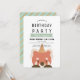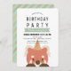 This simple and cute kid's birthday party invitation card features a white background with a red panda with a faux gold hat. The reverse side features a mint green background with faux gold diagnol stripes. Personalise it for your needs. You can find more red panda products at my store.