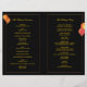 Stylish, flamboyant Asian paper lanterns and swirls in shades of red, orange & yellow + black background illustrated on custom Wedding Ceremony Programs. The program is designed to be folded in half down the centre. Beautiful stationary for your upcoming ASIAN THEME WEDDING | GARDEN LANTERNS WEDDING | BLACK & RED COLOR PALETTE WEDDING or STYLISH DESTINATION WEDDING. ((You can find the matching wedding essentials & favours in this store, Bridal Heaven. Contact ujean4791@gmail.com for custom work and/or coordinating wedding stationery.))