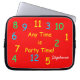 Any Time is Party Time, my crazy clock design, decorates this laptop sleeve. Default is red, but you can click "Customise" to CHOOSE YOUR OWN BACKGROUND COLOR for this sleeve. It is personalised with white script lettering. Wonderful graduation gift, or for back-to-school or Christmas. All Rights Reserved © 2014 Alan & Marcia Socolik.