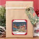 Add a patriotic American gift tag to your presents with this patriotic Santa gift tag sticker. Great for gifts "from Santa." Because Santa loves America too! Add a traditional touch to your Christmas gifts. Image shows Santa Claus waving his American flag while riding his sleigh through the air. Includes traditional "Merry Christmas" lettering. Fill out your name in the customizable "From" line to save time on your Christmas wrapping.