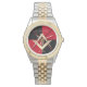 Stylish gold square and compass Masonic symbol with a black and red background personalised watch.