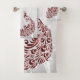 Add an elegant touch to your bath with a Red Peacock Personalised Bath Towel Set. Towel set design features a vibrant red peacock, a soft white leaf vine against a light grey grunge background with an area to personalise with your name. Additional gift items available with this design as well as a variety of colours.