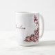 Enjoy your morning coffee with a Red Peacock Personalised Coffee Mug. Mug design features a vibrant red peacock, a soft white leaf vine against a light grey grunge background with an area to personalise with your name. Additional gift items available with this design as well as a variety of colours.