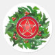Red Pentacle on Holly Wreath Classic Round Sticker