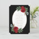Beautiful watercolor floral sprays... with gorgeous red peonies, lush greenery, eucalyptus, and baby's breath... surround an oval frame with your wedding details in gold typography script. The rich reds and greens in the florals set off the elegant black, white, and gold backgrounds. Add your own details by following the "Personalise" link. If you would like assistance, please reach out to me via message here on Zazzle or email. susanmingaydesigns@gmail.com
