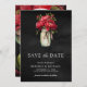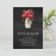 Red Peony Floral Mason Jar Black Wedding Photo Save The Date