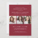 The front showcases three photos arranged in a clean collage layout, framed by a subtle white border. “Class of 2026” (or any year), the graduate’s name, and school are displayed in simple, modern white fonts that stand out beautifully against the deep red background.