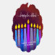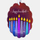 “Happy Hanukkah.” A playful, modern, artsy illustration of boho pattern candles and handwritten calligraphy script help you usher in the holiday of Hanukkah in style. Assorted blue boho candles with colourful faux foil patterns overlay a rich, brick red textured background on the front. Your favourite photo adorns the back. Feel the warmth and joy of the holiday season whenever you send this stunning, colourful keepsake paper ornament card. Personalise the custom text with your name and year and/or custom message and the photo of your choice. 5.25” square, includes ribbon to hang your card. Matching invites, stickers, pillows, wrapping paper, serving trays, home décor, and more are also available. Make this Hanukkah one to remember!