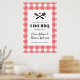 Welcome guests and the engaged couple with an I Do BBQ poster sign featuring a cheerful take on the classic, red, gingham plaid picnic blanket pattern and grilling tools with a heart. Personalise the text to suit your party needs with flexible text boxes or change even more about the design using the customise further link.