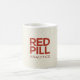 Mug with the Red Pill Analytics red text logo on the tan pill pattern background.