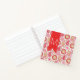 Pretty wire notebook done in a red, pink, green and white paisley pattern. Graphics of a red ribbon, running down from the front top, has a white single letter monogram. Personalise the letter, to suit your needs.