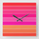 Red, Pink and Orange Stripes Square Wall Clock